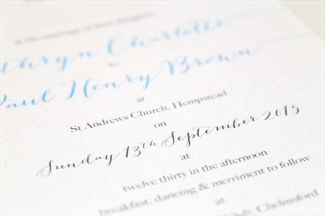 I really wanted to have traditional wording with a layout that incorporated modern calligraphy, pastels and rusticity, without having to spend a fortune getting someone else to design the entire thing. After moving on to various sketches, sample packs & practice runs, I decided to design my own invites and get them printed online.