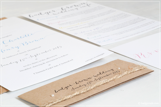 It may have taken a long time for me to decide on exactly how the invitations needed to look, an even longer time for me to design and print them and further time still to write and construct each one, but we couldn’t have had them any other way.