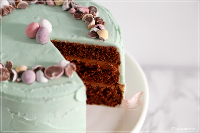 This baby is not only absolutely stunning, it’s the perfect mix of crumbly chocolate cake, velvety chocolate filling and creamy buttercream frosting. Plus, it’s topped with some of the most adorable and tasty, little, pastel, powdery eggs – who couldn’t love this time of year!?