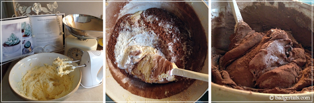 Meanwhile, combine the icing sugar, remaining butter and cocoa powder with an electric whisk or wooden spoon.
